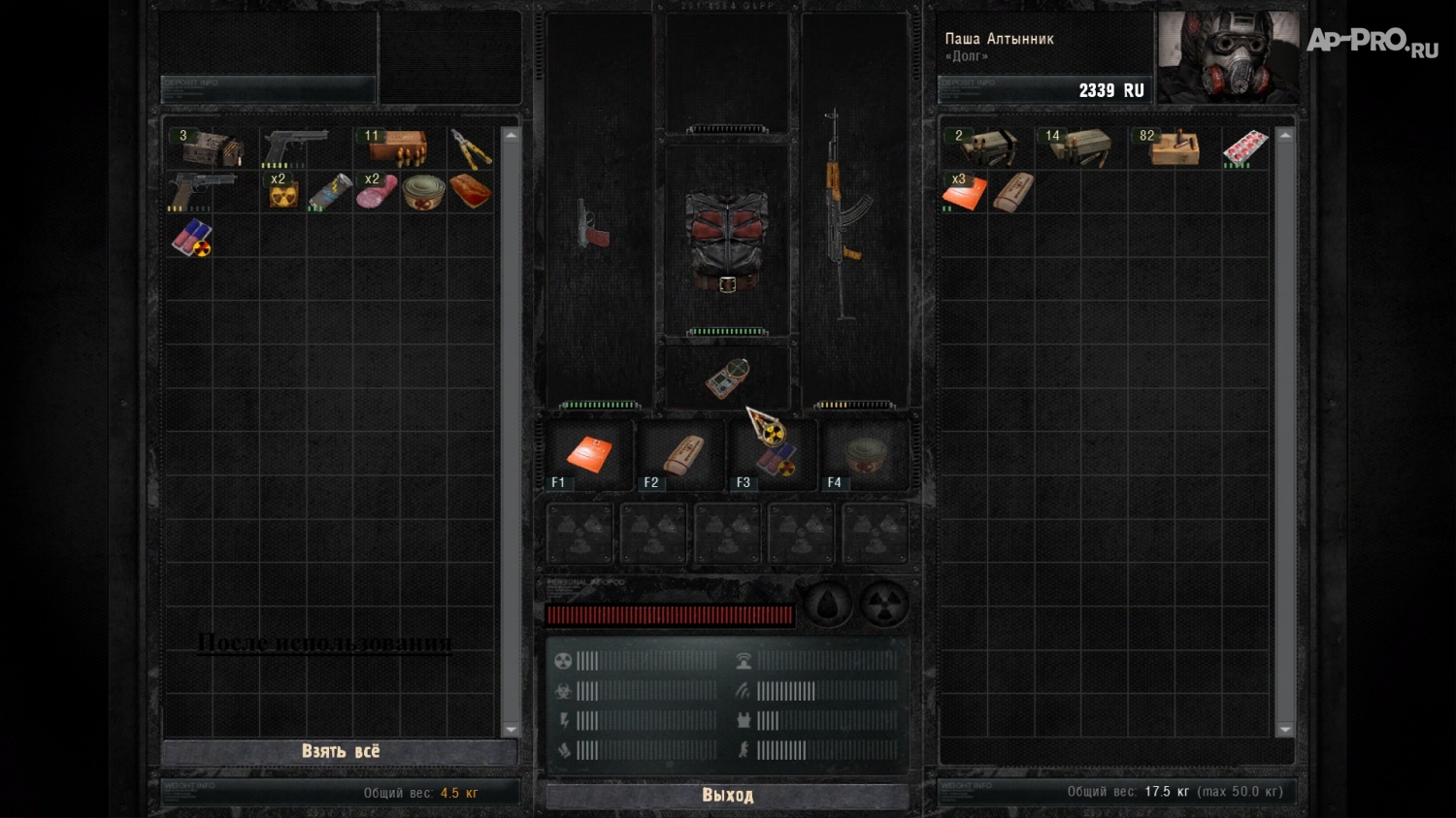 Kiborg-Monolit, Тут есть такая штука, иногда при спавне выдается такой "маленький рюкзачок", при использовании на землю в рюкзаке падает все кроме патронов и медикаментов.