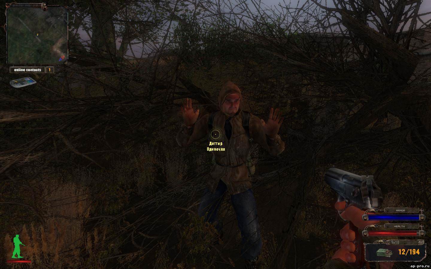 Где вход в X-18 Код от двери (на самом деле просто доступ, без кода, хотя код в разговоре и упоминается) даёт главный "слизень", удивительно похожий на Борова ("слизни" - бандитская группировка) за выполнение задания по сопровождению заблукавших сталкеров-одиночек. Вход находится в правом верхнем углу Тёмной долины, там наблюдательная вышка и две вертикальных цистерны, вход - возле забора. Поставьте фикс карты в PDA (см. выше) и не задавайте вопросов !!